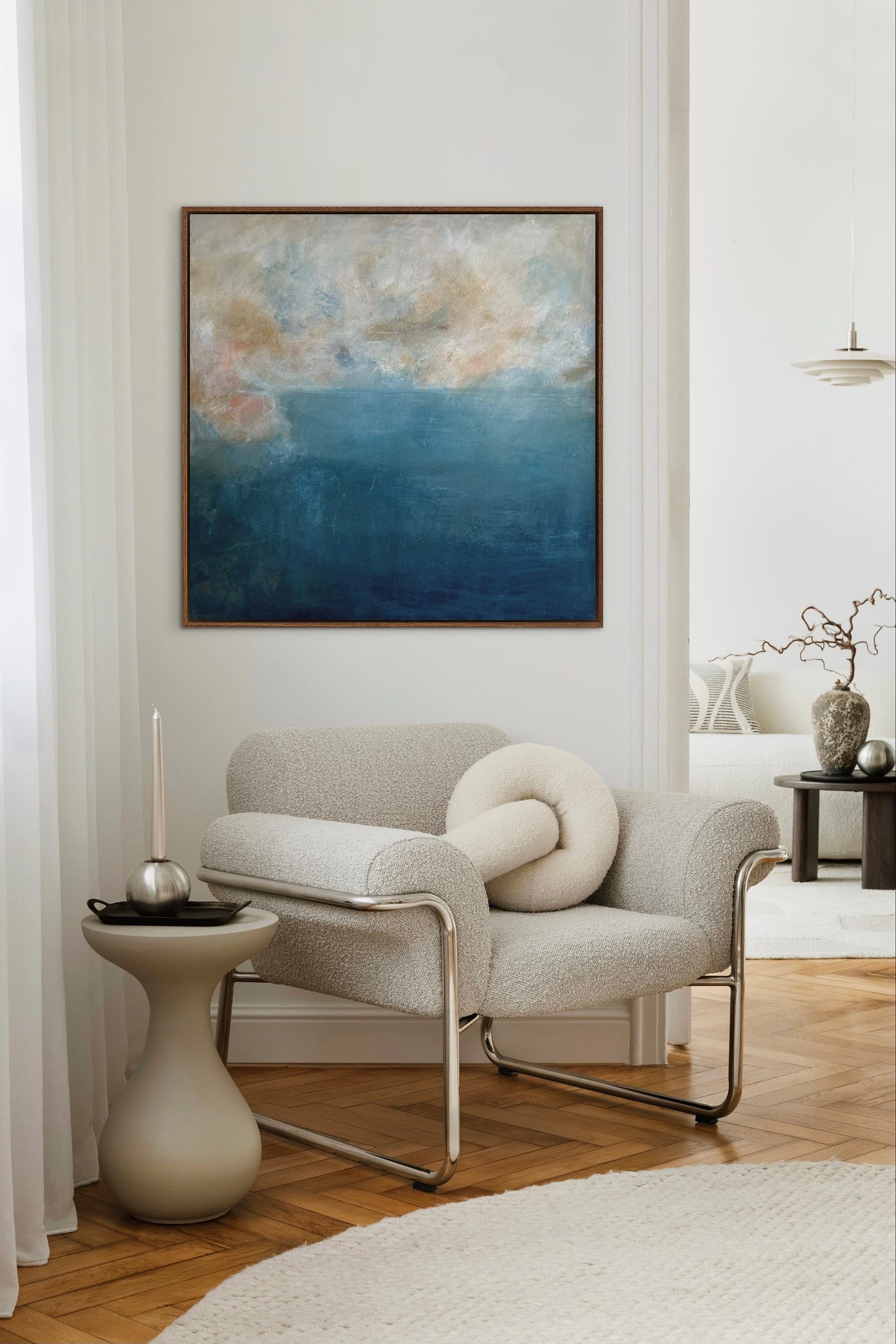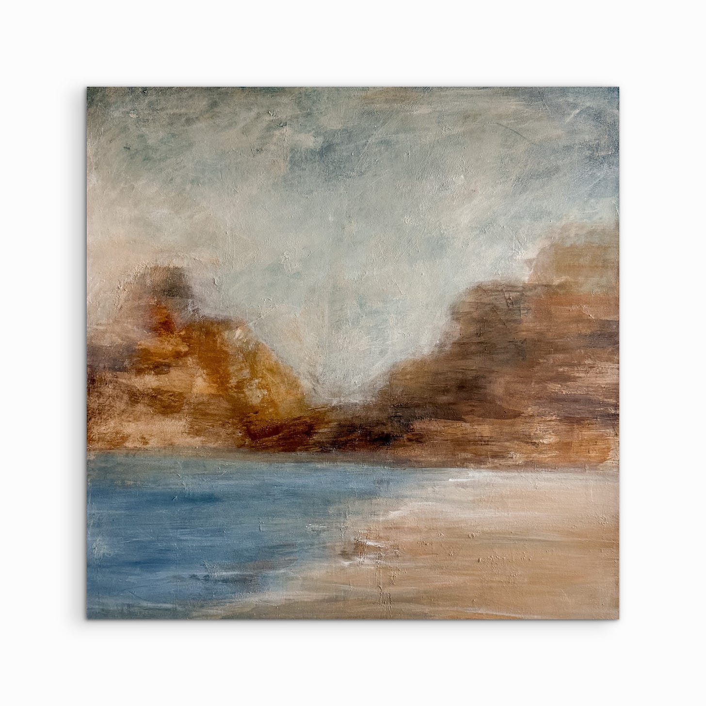 Those experiences shaped a new body of work I’m sharing today, Water & Warmth. The paintings in this collection move through ideas of orientation and return. Wayfinder and Inner Compass sit at the center, with the surrounding works reflecting moments of recognition, connection, and depth. Standing at the edge of the water. Feeling at home without trying. Allowing something to be meaningful.